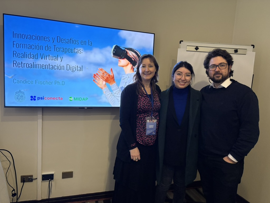 Durante el 17° Congreso Chileno de Psicoterapia, realizado en Reñaca, entre el 29 y 31 de agosto. La Fundación Psiconecta participó en el panel “Innovaciones y desafíos en la formación de terapeutas: realidad virtual y retroalimentación digital”. El equipo integrado por Candice Fischer, Sebastián Opazo y Valeria Fuentes presentó este proyecto por el Fondo para la Mejora e Innovación de la Docencia de la Pontificia Universidad Católica de Chile (FONDEDOC), para el aprendizaje de habilidades aplicadas.