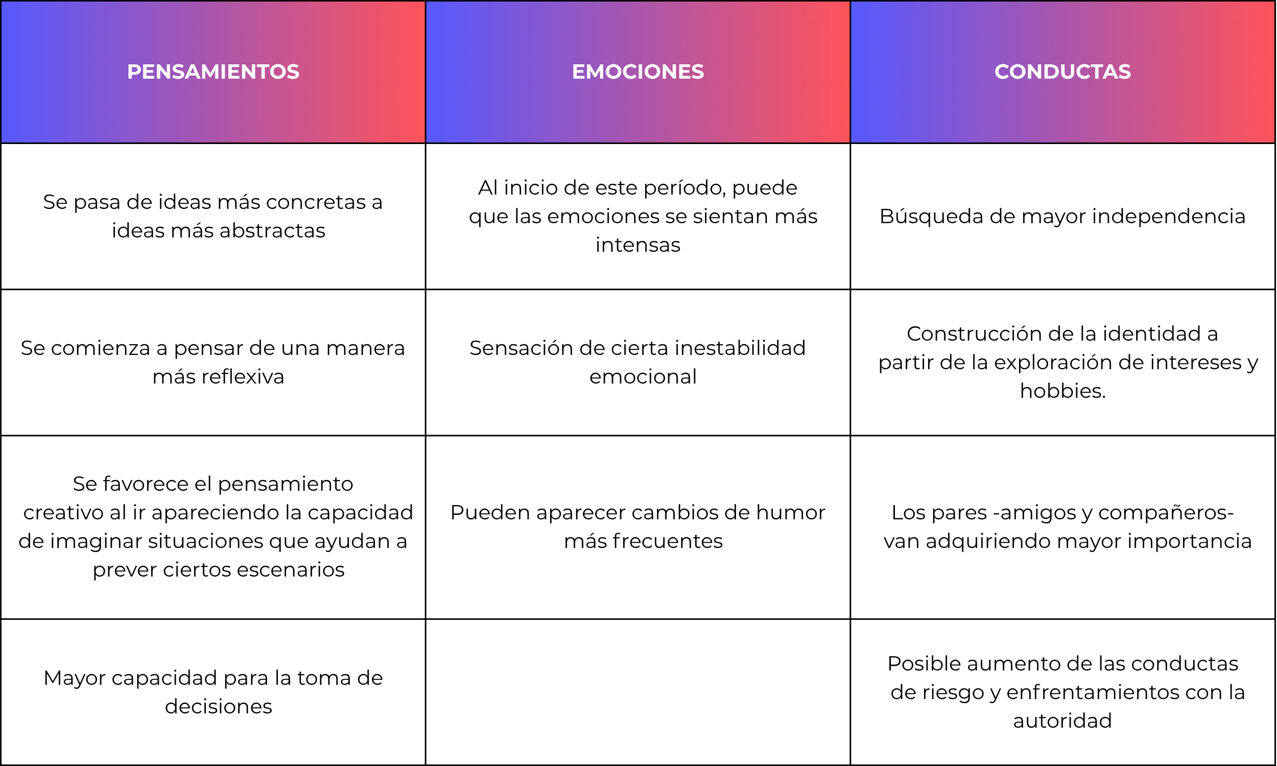Durante la adolescencia aparecerán cambios a nivel psicológico, lo que incluye pensamientos, emociones y conductas.